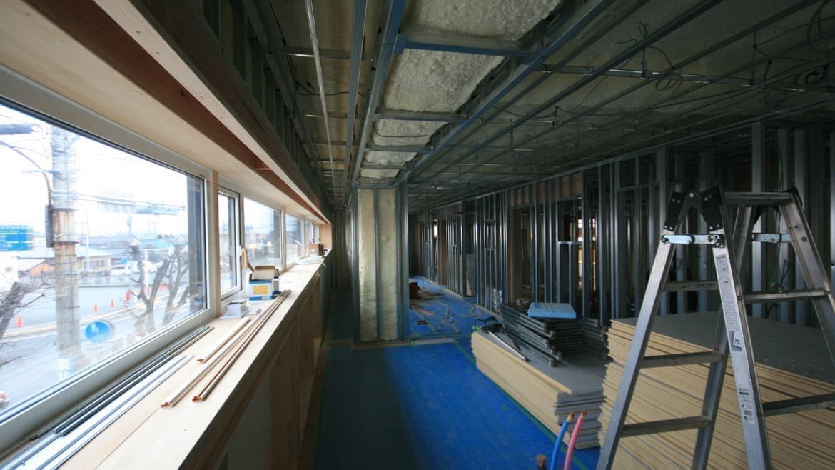 会社の2階に住む前アパートに住んでいたころ嫁から「アパート代を払うより会社の2階をリフォームして住んだ方がいいじゃない?」と提案されました。当時住んでいたアパートはとても冬が寒くエアコンのみでは足りなので石油ファンヒーターを付けてました。そのような事やYKKAP主催のAPWフォーラム等その当時勉強させて頂いた事もあり、住むのであればエアコン1台で住めるようにしたい!と考え色々なサイトを見て勉強させて頂きました。当時パッシブハウスジャパンの省エネ建築診断士等知らなく自身のオリジナルで断熱気密をしました。知っていればもっと色々と出来たと思いますし他の方法(現場発泡ではない)を後になって気づきましたが、仕方ありません。