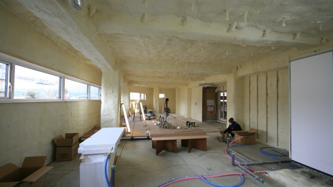 会社の2階に住む前アパートに住んでいたころ嫁から「アパート代を払うより会社の2階をリフォームして住んだ方がいいじゃない?」と提案されました。当時住んでいたアパートはとても冬が寒くエアコンのみでは足りなので石油ファンヒーターを付けてました。そのような事やYKKAP主催のAPWフォーラム等その当時勉強させて頂いた事もあり、住むのであればエアコン1台で住めるようにしたい!と考え色々なサイトを見て勉強させて頂きました。当時パッシブハウスジャパンの省エネ建築診断士等知らなく自身のオリジナルで断熱気密をしました。知っていればもっと色々と出来たと思いますし他の方法(現場発泡ではない)を後になって気づきましたが、仕方ありません。